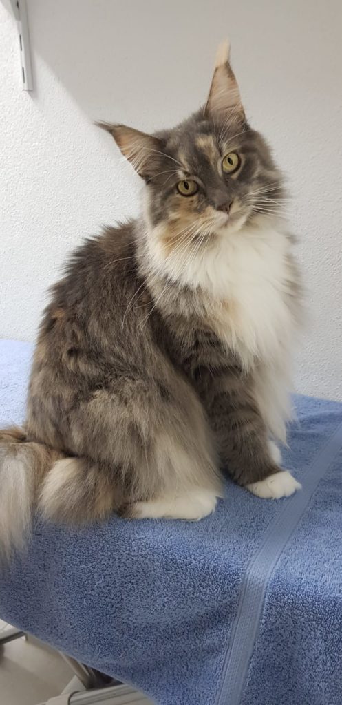 Quand je suis arrivée pour choisir un chaton que mes enfants m’offraient comme cadeau, il y en avait 6 plus magnifiques les uns que les autres. C’est toi qui es venu la première te lover entre mes jambes et durant tout le temps de ma visite, tu es restée à cet endroit. Donc pour moi c’était clair que c’était toi que j’allais prendre. Et depuis ce jour on ne sait plus quitter 🐈